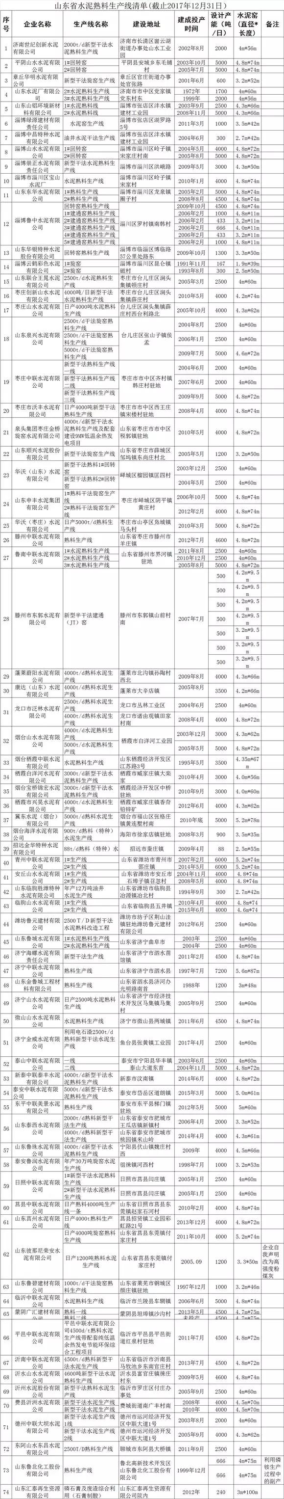 山东省水泥熟料生产线清单公示 共计114条(附名单)